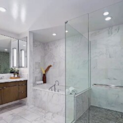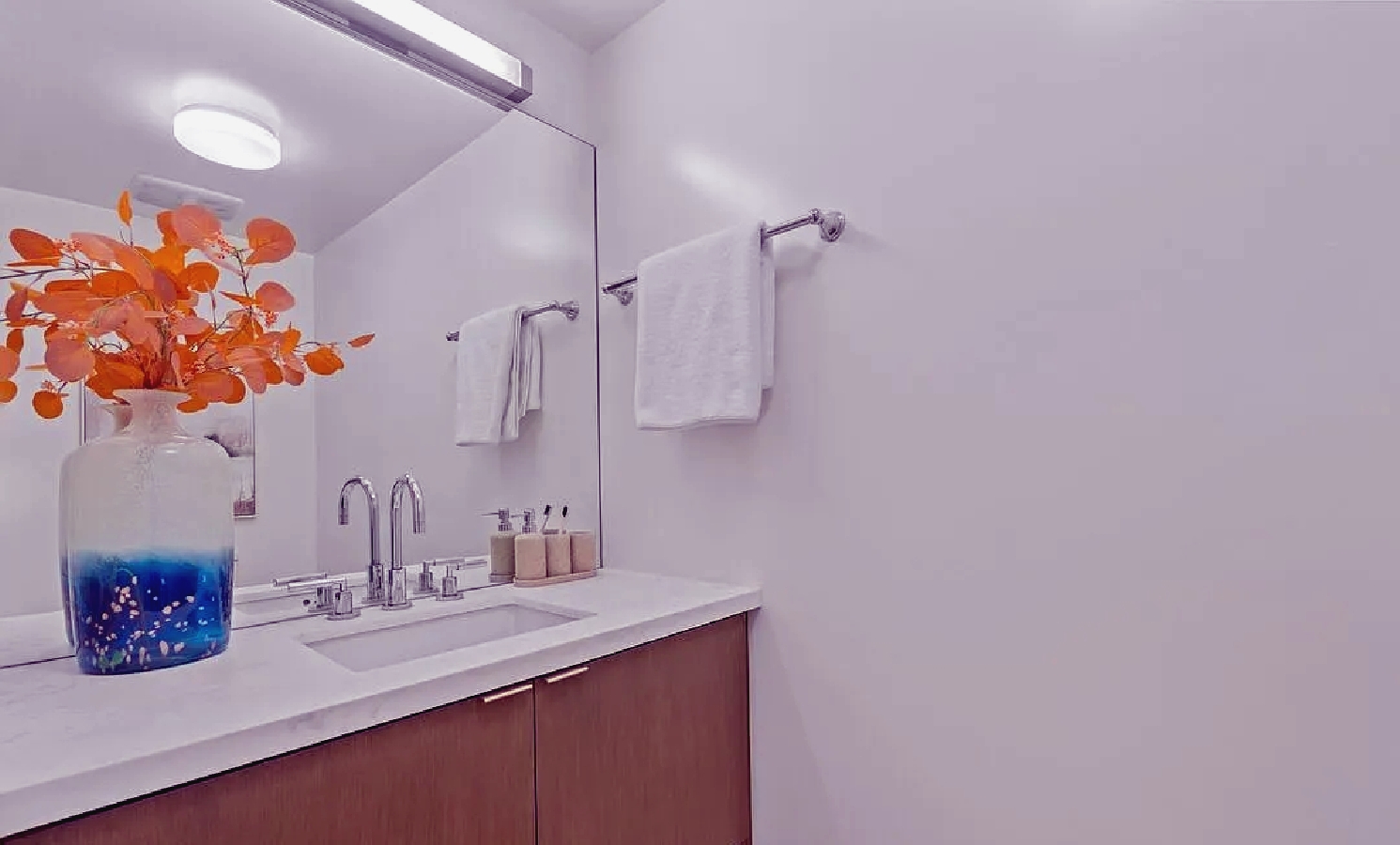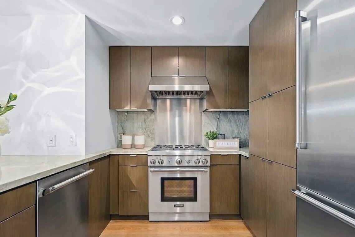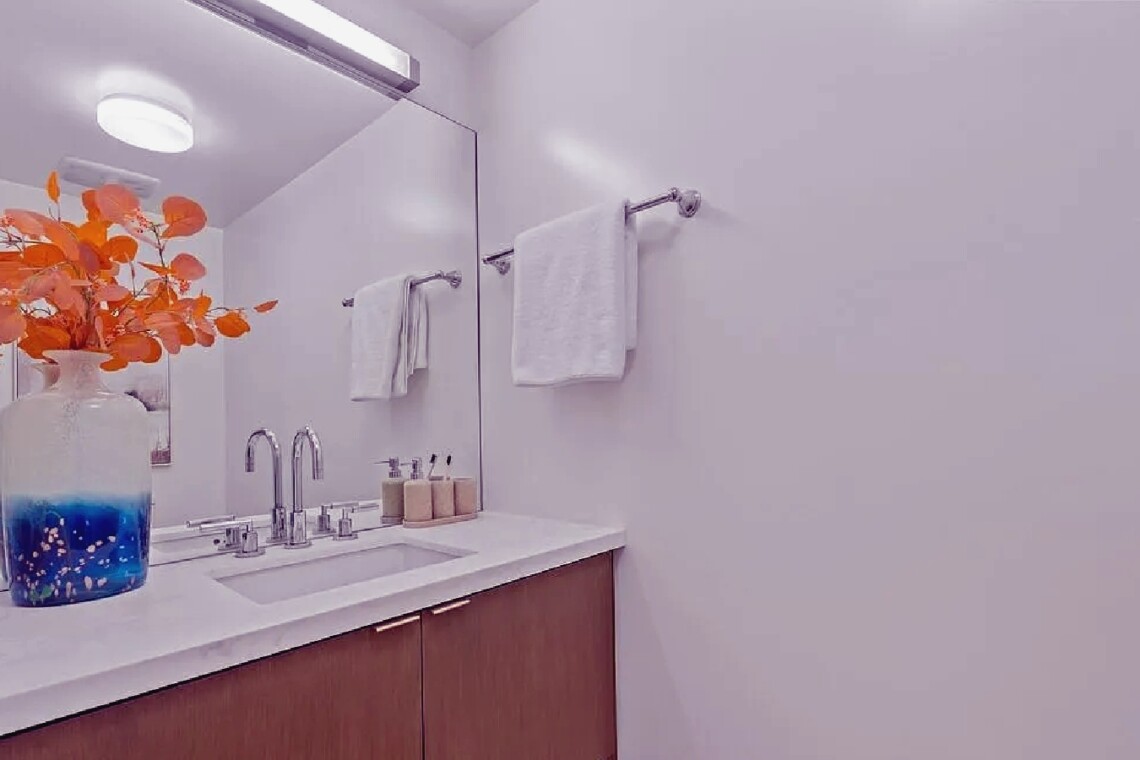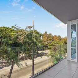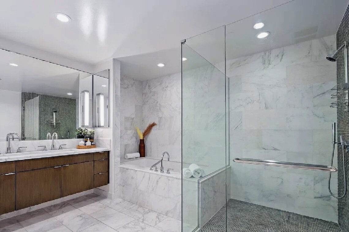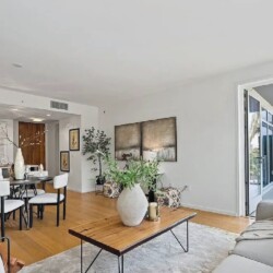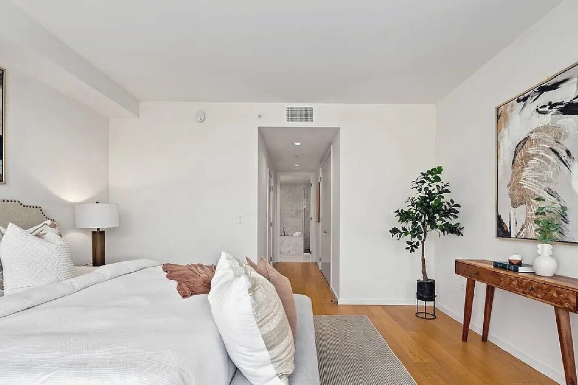 Sophisticated one-bedroom, two-bath condo offering contemporary coastal living with stunning views of Tongva Park. The open layout features floor-to-ceiling windows, a modern kitchen with Thermador appliances, Sea Pearl quartzite counters, and custom oak cabinetry. The spacious living area opens to a private terrace overlooking the park, while the serene primary suite includes a walk-in closet and spa-like bathroom with dual vanities, soaking tub, and glass shower. Enjoy hardwood floors throughout, in-unit laundry, and premium amenities such as 24-hour concierge, gym, Skybridge Lounge with ocean views, BBQ, and pet spa—all just steps from Santa Monica Beach, the Pier, and world-class dining.