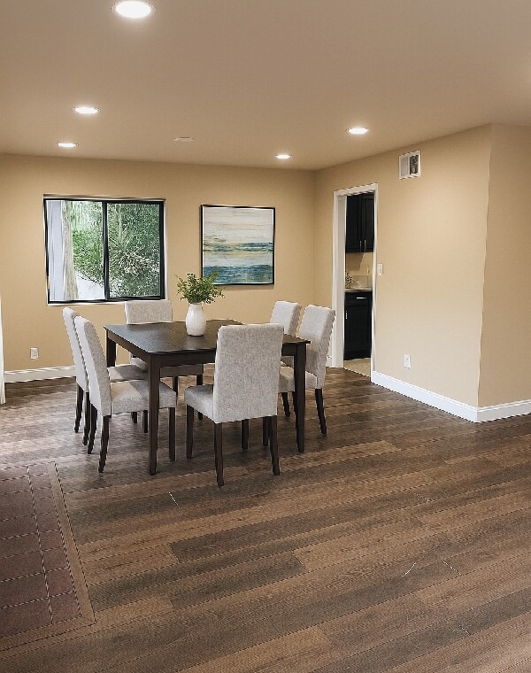 Beautifully remodeled two-bedroom, two-bath apartment in a duplex just steps from the beach. This bright and stylish unit features brand-new hardwood floors, modern kitchen cabinets with sleek countertops, and recessed lighting throughout. The layout is ideal for roommates or a home office setup, with an inviting front patio perfect for entertaining.