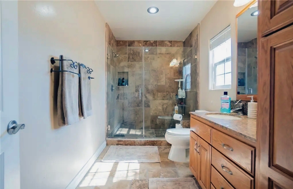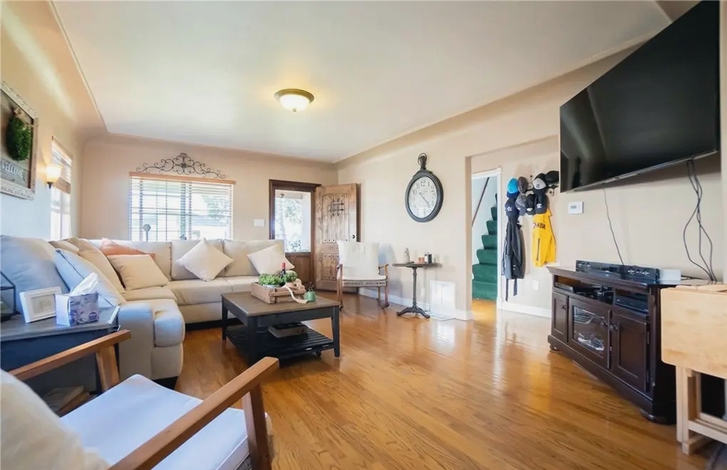 This beautifully remodeled 3-bedroom, 3-bath home in San Pedro’s prestigious Holy Trinity neighborhood offers over 2,500 sq ft of living space on a large corner lot. Featuring hardwood and tile flooring, the home includes a spacious family room with 10-foot ceilings and direct access to a 500 sq ft rooftop deck showcasing views of the Palos Verdes hills, harbor, and downtown Los Angeles. The gourmet kitchen is equipped with oak cabinetry, granite countertops, and stainless steel appliances. The master suite boasts cathedral ceilings, multiple closets, and a luxurious en-suite bath. Additional highlights include zoned air conditioning, a newer tankless water heater, and a detached two-car garage. A private mother-in-law suite with a full kitchen and separate entrance adds flexibility for guests or extended stays, making this property a perfect blend of comfort, functionality, and Southern California charm.