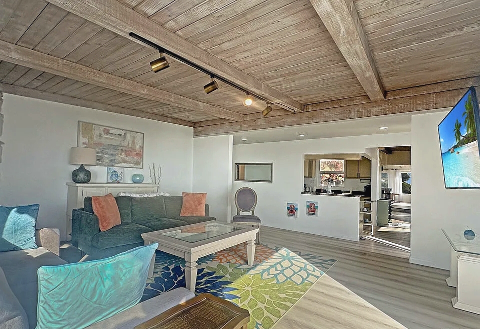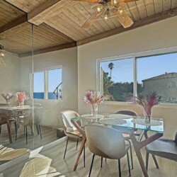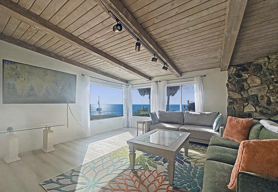 “Absolutely stunning beach house with incredible ocean views! The open layout and high wood beam ceilings make the space feel bright and breezy, while the rock fireplace adds so much charm. We loved having coffee at the breakfast bar overlooking the water and relaxing in the beautiful backyard. It’s the perfect mix of comfort, style, and coastal serenity—an ideal California getaway.”